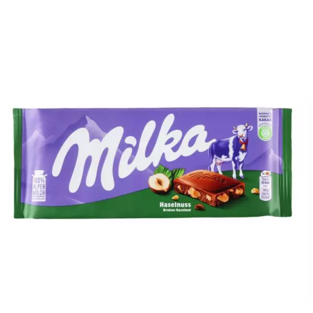 MILKA HAZELNUT, é uma de chocolate ao leite importado com pedaços maravilhosos da avelã triturada. É uma mistura de crocância com maciez que derrete na boca.